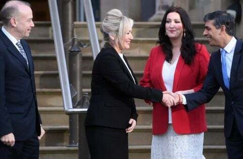 Mr Sunak joined Taoiseach Leo Varadkar and Northern Ireland Secretary Chris Heaton-Harris in Belfast on Monday to mark the return of a powersharing Executive following two years of political stalemate.