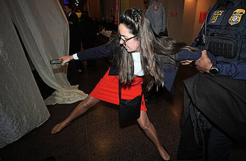 Chaotic scenes ensued as law enforcement officers grappled with them and forcibly removed them from the National Building Museum.