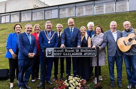 Taoiseach Micheál Martin has officially unveiled Rory Gallagher Avenue as the new name for the main entrance road at Cork Airport.