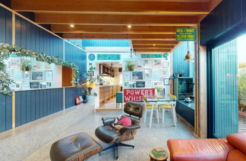 The driveway is lined with Victorian cobblestones salvaged from London’s Kings Cross Railway Station while the façade is adorned with reclaimed bricks from a former Methodist church. A pineapple door knocker adds a quirky, personal touch.