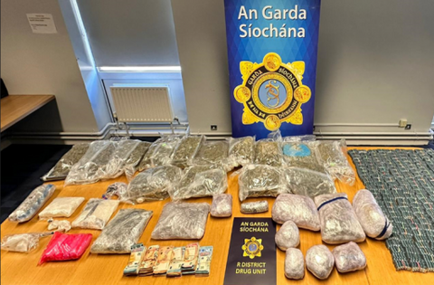 During the course of this search approximately €400,000 of suspected cannabis, €230,000 cocaine, €60,000 valium and €2,000 MDMA was recovered. Approximately €57,000 in cash was also recovered.