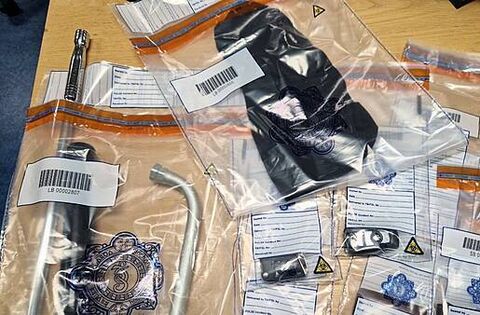 Stolen car keys, wallets and bank cards were recovered from the vehicle, along with balaclavas, iron bars and torches.