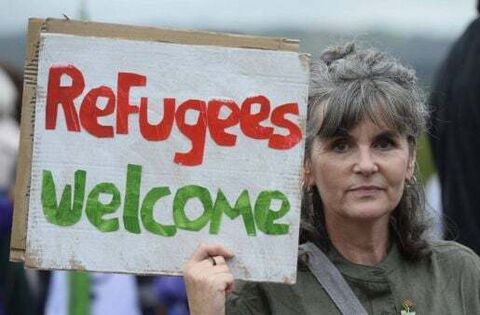 The Stand Against Racism Unite in Hope rally saw banners reading “refugees welcome” and “hate is never the answer” held aloft in front of Parliament Buildings.