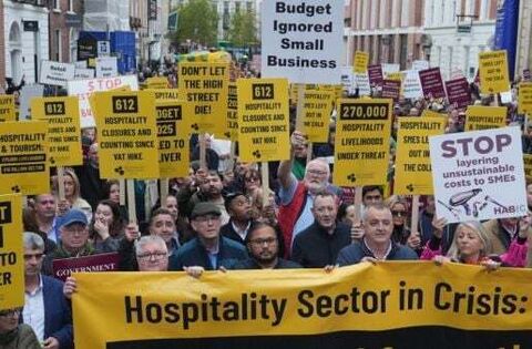 The owners of restaurants, cafes and pubs, supported by groups such as ISME, the hairdressers’ association and the childcare sector, marched past the Department of Finance to Leinster House on Tuesday over the lack of support offered to small and medium-sized businesses (SMEs) in Budget 2025.