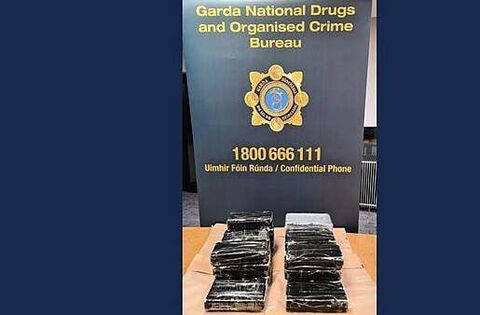 The seizure was made by personnel attached to the Garda National Drugs and Organised Crime Bureau after they intercepted two vehicles shortly before 5pm on Thursday, where they discovered 20kg of cocaine and €15,000 in cash.