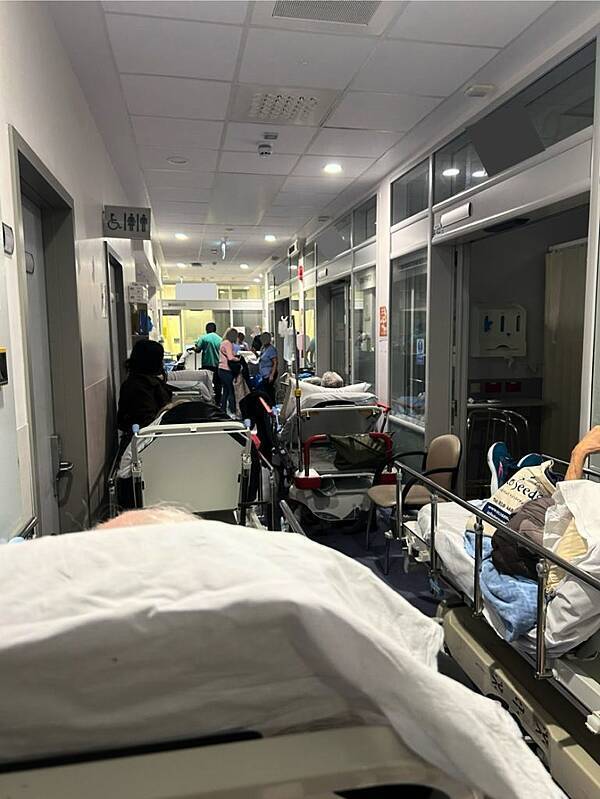 Photographs taken inside the emergency department zone in recent days show patients languishing on trolleys across both sides of corridors with little or no room to walk.