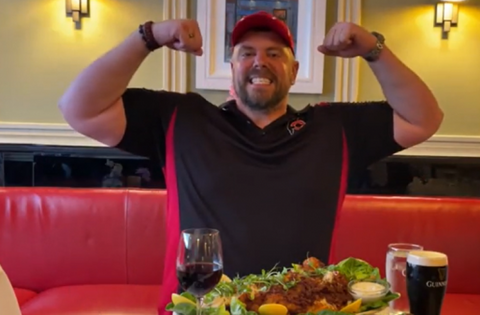 US professional eater takes on Davy Byrnes' 'Giant Irish Fish and Chips Challenge'