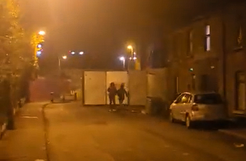 Six wheelie bins and wood pallets were also set on fire on the laneway. People could be heard shouting “Get them out”.