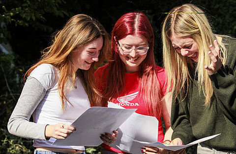 At Donahies Community School, students gathered in huddles to open the envelopes which revealed how they performed in the exams.