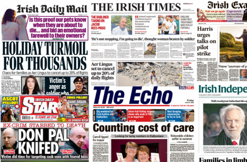 Aer Lingus cancellations and the sentencing of a member of the Defence Forces for assault lead the national papers on Friday.