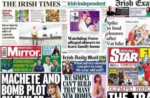 Ireland's Olympians and the foiled terror plot against Taylor Swift's Vienna concerts which led to them being cancelled feature on most Irish newspapers' front pages on Friday morning.