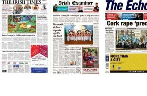 The Irish Examiner lead with a piece about an 8 per cent rise in domestic violence reports this year compared to 2022, with 54,000 complaints made to date in 2023.
