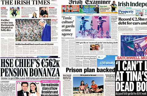 The Irish Daily Mail leads with the head of the HSE set to walk away from the role with a €562,000 pension.