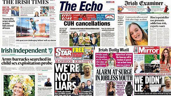 News of Israel’s security cabinet approving a plan to take over Gaza City features heavily across the front pages of Irish newspapers on Friday.
