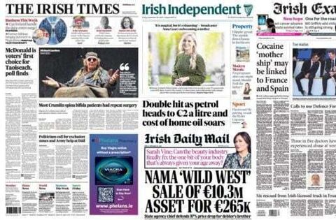 A wide variety of stories feature on the Irish front pages at the end of the working week.