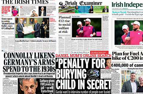 The Irish Daily Mail leads with Catherine Connolly's comments on Germany, as she compared Germany's spending on arms to the 1930s.