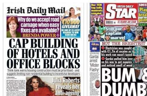 The ESRI has warned the construction of hotels and office blocks should be capped in favour of housing, the report makes the front page of the Irish Daily Mail.