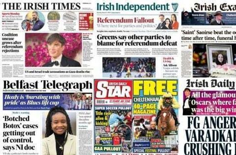 The fallout from the resounding No votes in the referendums continues to dominate the front pages of the Irish newspapers.