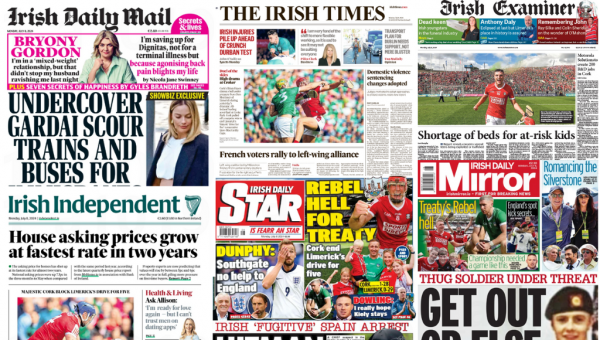 Finally, the Irish Daily Star reports on ongoing investigations into a gandland-related death in Dublin, and the Irish Daily Mirror leads with an alleged threat made to Defence Forces member Cathal Crotty after he was found guilty of a violent assault on a young woman.