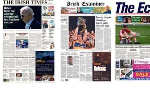 Monday's front pages are firmly focused on Joe Biden deciding to step down as the Democratic candidate in the US presidential election race after sustained pressure from his donors to do so.