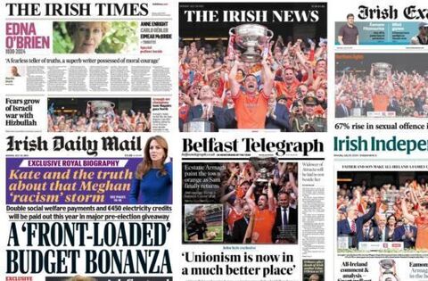 The victory of Armagh in the All-Ireland football final is splashed across the front pages of Monday's Irish newspapers.