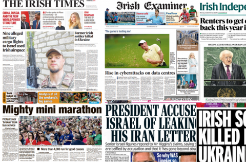 The Irish Daily Mail leads with claims from Michael D Higgins that Israel leaked a letter he sent to the new leader of Iran.