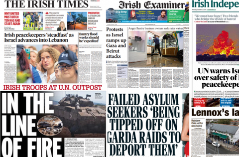 Concern for Irish troops in Lebanon on the year anniversary of the Hamas attacks on Israel dominate the papers on Monday.
