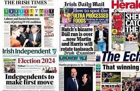 Stories related to the general election dominate the front pages of Irish newspapers, with leading stories ranging from potential coalitions to Gerry 'The Monk' Hutch's failed election bid.