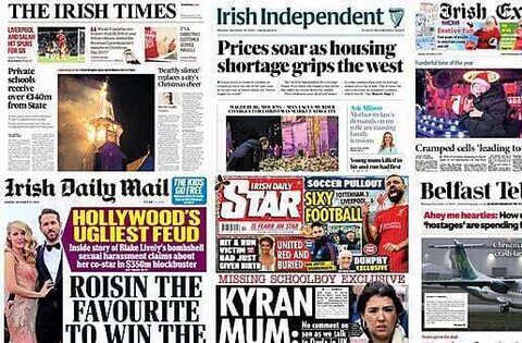 The Belfast Telegraph leads with an image of a plane that crash landed at Belfast City Airport on Sunday evening.
