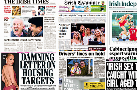 The Irish Times reveals it is unlikely once-off energy credits will be implemented for next winter. The front page also includes a warning from Simon Harris if Donald Trump imposes tariffs on the EU.