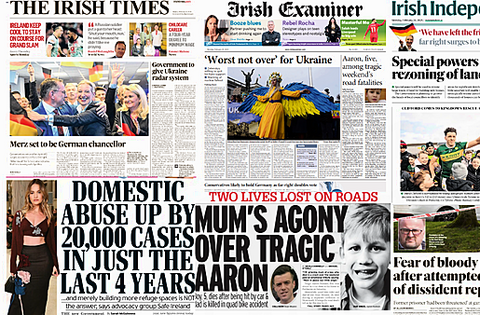 The Irish Times leads with the elections in Germany, as Friedrich Merz won Germany’s national election, while a far-right party surged to become the nation’s second-largest.