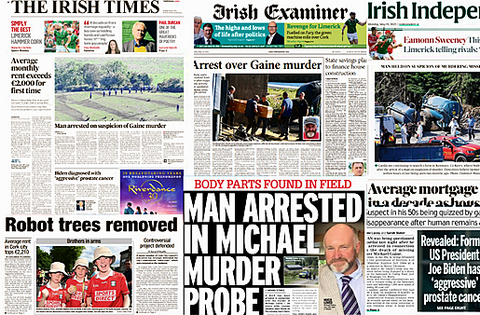 Both the Irish Daily Mirror and the Irish Daily Star lead with a man arrested over the death of Mr Gaine in Co Kerry.