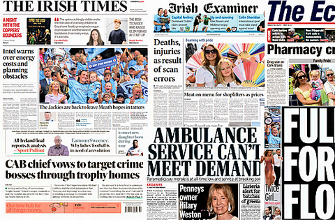 The Irish Examiner leads with mistakes in reading medical scans have led to deaths, disability, or severe harm to patients at HSE hospitals.