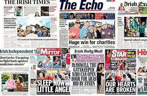 The front page of the Irish Daily Star features the vigil held for Daniel Aruebose after remains were found in the search for him.