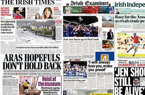 The Irish Independent and the Irish Daily Mail also lead with comments made by both candidates in the Presidential election.