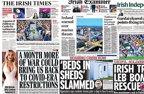 The Irish Examiner leads with warnings that Ireland’s critical marine infrastructure needs to be prepared for multiple possible attacks — from sabotage to cyber — as the damage to the economy and society could be “catastrophic”.