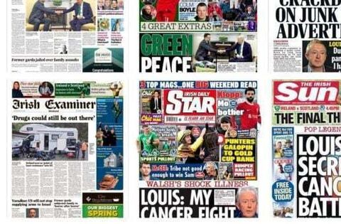 The Irish Sun leads with Celebrity Big Brother contestant Louis Walsh opening up on his cancer battle.