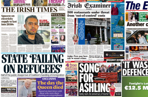The Irish Examiner leads with 500 restaurants are reportedly under threat from 'out of control' costs.