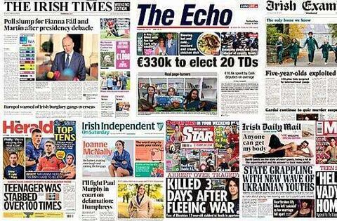 The Irish Times leads with the results of a poll showing that support for Fianna Fáil has slumped, while Taoiseach Micheál Martin's personal rating has fallen by 11 percentage points to its lowest level in more than five years.