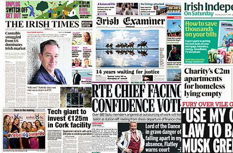 The Irish Times leads with the US becoming the single biggest supplier of cannabis to the Irish drug market after a rapid increase in transatlantic smuggling.
