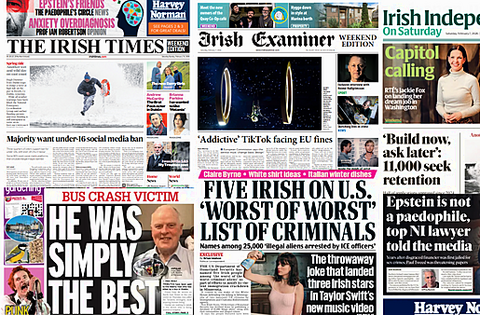 The Irish Daily Mail leads with five Irish people on a U.S "worst of worst" list of criminals in an attempt to justify violent immigration crackdown measures in Minnesota.