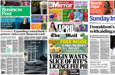 The Irish Mail on Sunday reports Virgin Media 'wants a slice of RTÉ's licence fee pie', writing to the Minister for the Media seeking a €30 million-share of the TV licence fee takings.