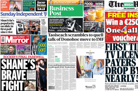 The Sunday papers make their tributes to Shane MacGowan, while the latest polls suggest a hit to Sinn Féin's popularity.