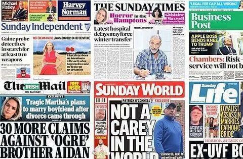 A wide range of stories feature across Sunday's newspaper front pages, including a possible terror link to a fire at Conor McGregor's pub.