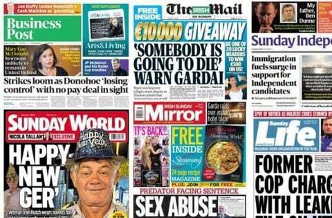 Sunday World has a photo of Gerry ‘The Monk’ Hutch splashed across its front page, smiling for the camera as he celebrates the New Year as a free man after his acquittal at the Special Criminal Court last April.