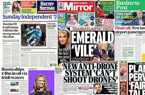 The Irish Sunday Mirror leads with criticism of Martin's visit to the White House for St Patrick's Day, as gardaí fear security costs if Donald Trump were to visit Ireland.