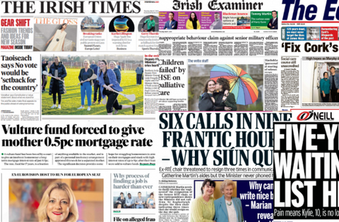 The Irish Times leads with comments from Taoiseach Leo Varadkar on the referendums, as he says a No vote would be a "setback for the country."