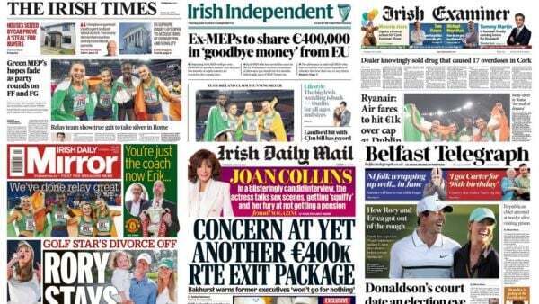 The Irish Daily Mail leads with RTÉ negotiating an exit payment of up to €400,000 for an individual.