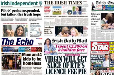 The Irish Daily Mail reads: 'Virgin will get slice of RTÉ's licence fee pie', under plans from Minister for the Media Catherine Martin.
