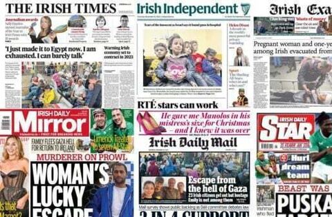 The evacuation of Irish citizens from the Gaza Strip dominates Thursday’s front pages.